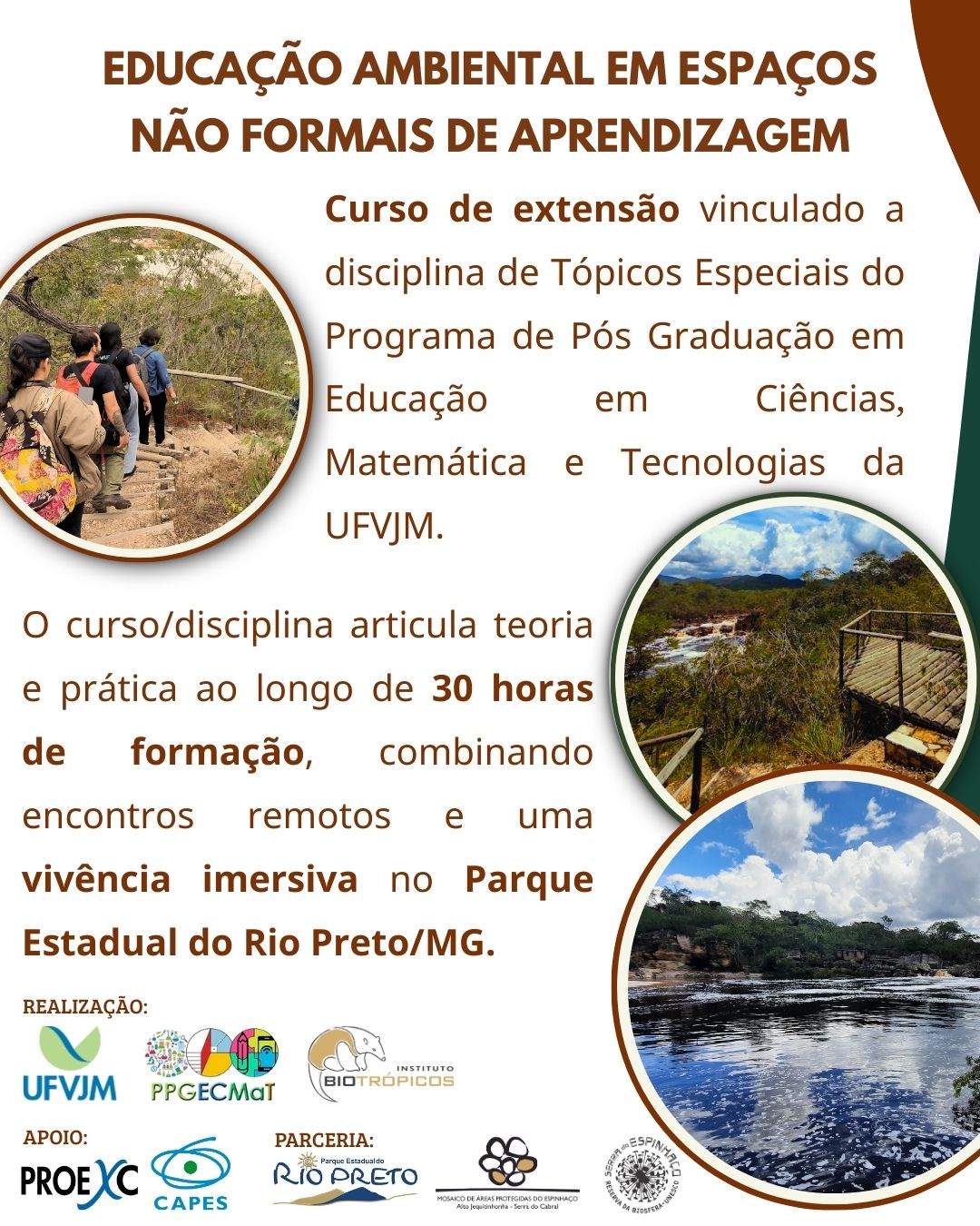O curso representou uma oportunidade formativa especial, reunindo mestrandos, graduandos, professores, educadores, monitores e gestores de Unidades de Conservação do território do Mosaico de Áreas Protegidas do Espinhaço: Alto Jequitinhonha - Serra do Cabral.